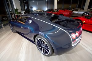 This is an amazing and unique example of the fastest car on the planet. The performance figures and specification are incredible. 100 mph in 5.5 seconds, 263 mph top speed, 1.182 hp, 1250 NM from 2000 rpm, W16 cylinder, twin turbo charged, all-wheel drive, 7 speed double clutch gearbox, active aerodynamics, bespoke interior and exterior. So not only is the fastest car just that, it is also one of the most manageable. Undoubtedly an icon of it’s time and it’s testament to VW Groups boss Dr Piech (chief engineer for Porsche 917, Audi Quattro …) and his vision of Ettore Bugatti’s work. Bugatti was the pioneer of combining engineering solutions in an art form. Ettore and his son believed, if it was possible in metal, then it need to perform and look, perfect. Exquisite. Before we will hand out this beautiful vehicle to our customer a check up is done at the surrounded Bugatti dealer