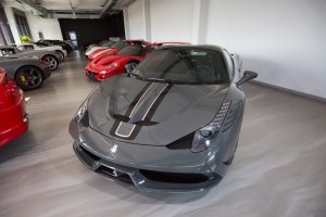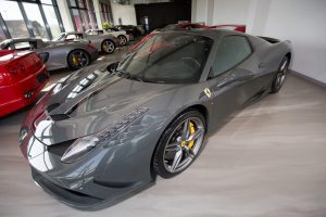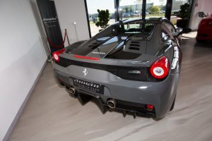 This Ferrari 458 Speciale Aperta is again limited to an already limited edition. From this Speciale Aperta 499 pieces where built for the market worldwide. Only a handfull of this outside colour paintet grigio scuro where built from the factory. Since the start of construction and basic version of the 458 Italia, the Aero concept was completely revised. This Ferrari waives any spoilers or diffuser to press the vehicle at any speed on the asphalt. The engineers at Ferrari have developed a lot of effort, a design that is able to create with simple body changes a super athlete. Without any question, the Speciale Aperta will be a long-term investment in the future. Before we will hand out all our sold cars to the customer, a check is up report from the official Dealer is performed with a current service according to manufacturer specifications.