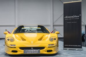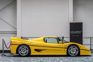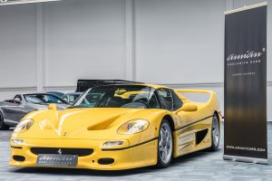 The Ferrari F50 is built between year 1996 and 1997 on the occasion of the 50th anniversary of the company. Just 349 pieces were produced. The vehicle was sold exclusively to selected customers for an original price of the equivalent of 380,000 euros. The vehicle is packed with technology from Formula 1 and is the direct successor to the famous F40. The 4.7-liter V12 engine of the F50 makes 520 hp , The basis for this is the former engine from Formula 1. The power is transmitted via a manual six-speed gearbox. From the factory, the F50 was equipped with one-piece magnesium wheels with central locking. The performance weight of this dream car is 2.53 kilograms per horsepower. Thus, the F50 achieved a lap time of 1: 27.1 minutes on the test track in Fiorano. He batted his predecessor by 2.5 seconds. The car is a good investment due to its low unit count and popularity. Accordingly, the price of the F50 will continue to rise over the next few years. Before delivery to our customers, a check-up report and a current service is carried out at the surrounded Ferrari dealer.