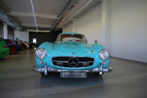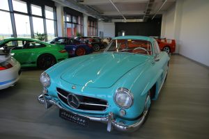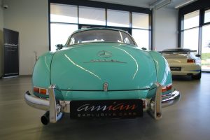 The 300 SL is probably the best-known classic from Mercedes. His most famous trademark is the two flying doors. The aerodynamics has been revolutionary since the beginning of the 2-seater and stand out with all kinds of details in the eye of the beholder. An 3-liter six-cylinder petrol engine, which brings it to an output of 215 hp, is fitted under the hood. Thus, the coupe accelerated in 10 seconds from 0 to 100 km / h and reached a respectable for those times top speed of 208 to 260 km / h, depending on the rear axle. Due to the low edition of the Mercedes-Benz 300 SL of about 1,400 pieces, this type of vehicle is in high demand among collectors and with very good specimens, maximum values of well over 1 million euros have already been achieved.