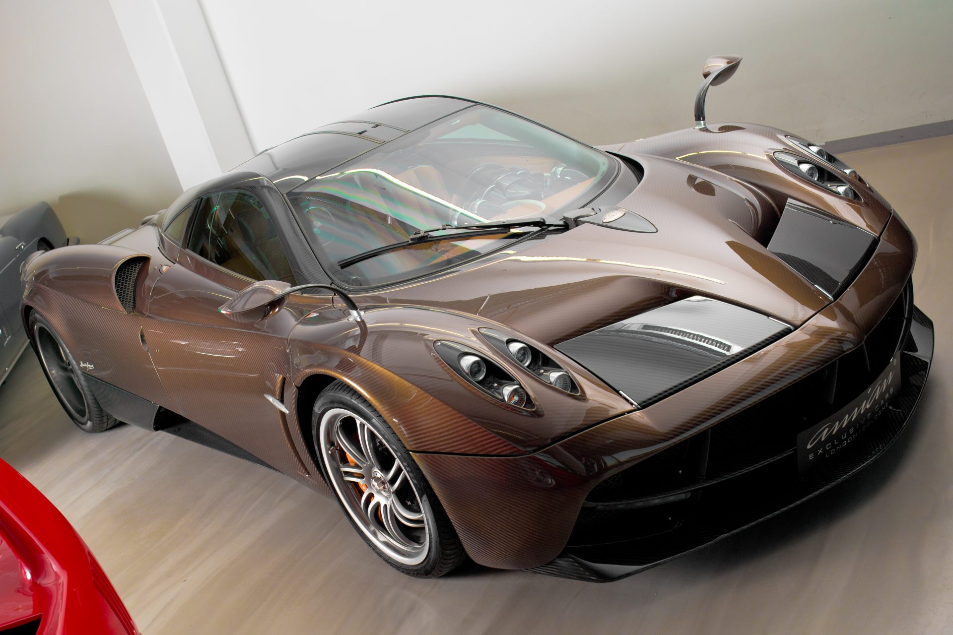 The Pagani Huayra is an Italian mid-engined limited of 100 sports car produced by Pagani Automobili SpA in Modena, Italy. It’s principle features of specification, inspired by Horacio Pagani’s belief in art and science psychologies combined, are the all carbon and unique carbotanium monocoque chassis, offering class leading stiffness and strength, yet weighing only 1350 kg complete, the specially configured AMG Mercedes Benz twin turbo V12 motor producing 720 bhp, transmitted by the ultra-lightweight Xtrac 7 speed semi-automatic transmission package. With close cooperation from suppliers such as Brembo, Pirelli, Aspa, Gruppo Dani, MHG Group, Sonus Faber and AMG, the entire automobile is hand crafted to the highest level of finish. Supreme performance and safety are assured via the unique active aerodynamics package, the carbon ceramic disc brake and the circuit inspired suspension systems. It is the successor to the truly iconic Pagani Zonda, specifically developed from the Zonda R circuit–only derivation. It offers the driver the option of a 230 mph type performance and tactility, whilst travelling in comfort and a unique style normally associated with private jets. With an list price of € 1.056.000 Euros plus customer options, only 30 new Huayra are produced annually with 15 month delay. The Huayra name comes from the Argentinian God of Wind, Huayra Tata. When released in 2012, the Huayra won three major ‘Car of the Year’ awards. EVO magazine declared it ‘Car of the Year’, CAR magazine acclaimed it as ‘Performance Car of the Year’ and BBC’s Top Gear awarded it ‘Hypercar of the Year’ after The Stig recorded an amazing and fastest ever 1.13.8 secs on the Top Gear test track and Richard Hammond passed on his fullest approval of Horacio Pagani’s art form in the most glowing terms.