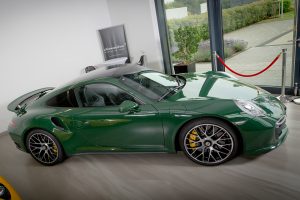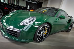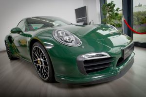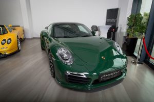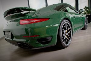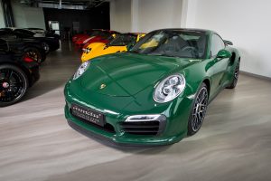Amian Exclusive Cars is offering a Porsche 991 Turbo S in rare and beautiful color, British Racing green. The Turbo S is the driving machine and convinces with extensive features, a lot of electronics and the focus to stand out on the road. The powerhouse is catapulted to the 62 mph mark in just 2.8 seconds with expressive 553 hp. The sports seats in leather provide enough grip, even if it gets faster. Our vehicles are thoroughly checked by the respective brand dealer before we will hand out the vehicle to our new client. A new service is done as well.