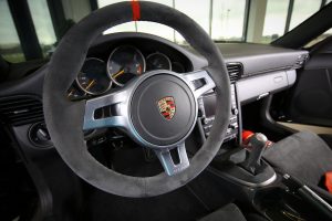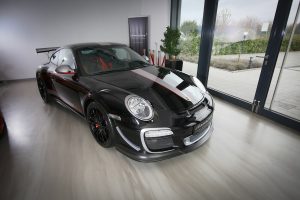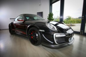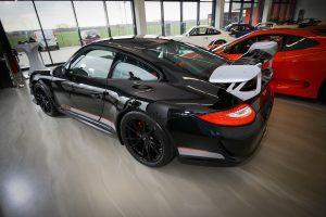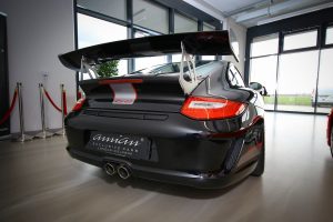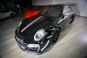 Amian Exclusive cars offers a limited to 600 pieces built Porsche GT3 RS 4.0 from second owner. This series is again equipped with 50 hp more power than the previous model GT3 RS 3.8 liters. 33 percent of 600 vehicles were built in color black, which should affect the value in the future significantly upwards. In addition, the RS lost 10 kg on total weight. A sports exhaust system from Akrapovic gives the RS even more soundand is also lighter than the original one. The performance was brought from the racetrack to the normal road and is harmoniously to aggressively in all areas of driving dynamics. An extension of the Porsche Approved Warranty for new 12 months is possible. The vehicle is not in our showroom in Cologne present but after by appointment to visit with us at customers home.