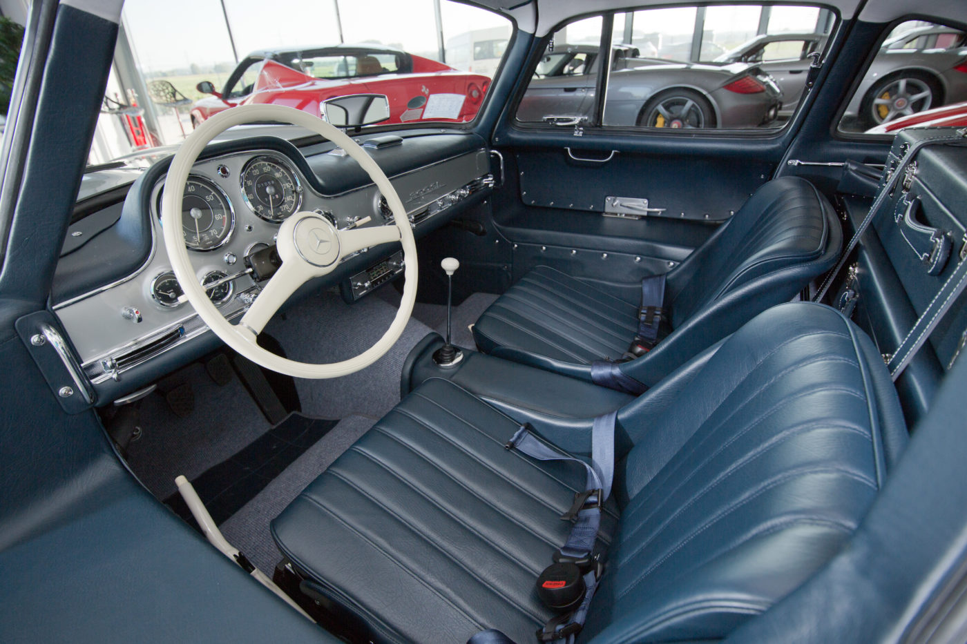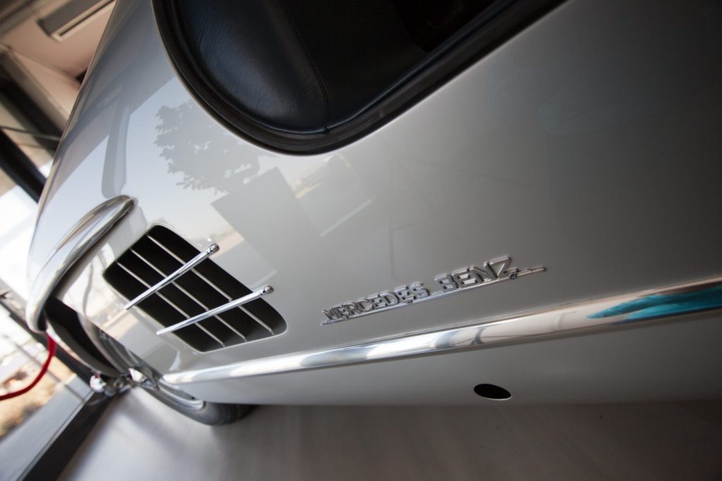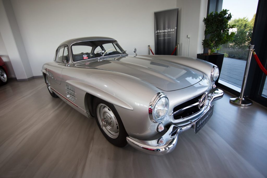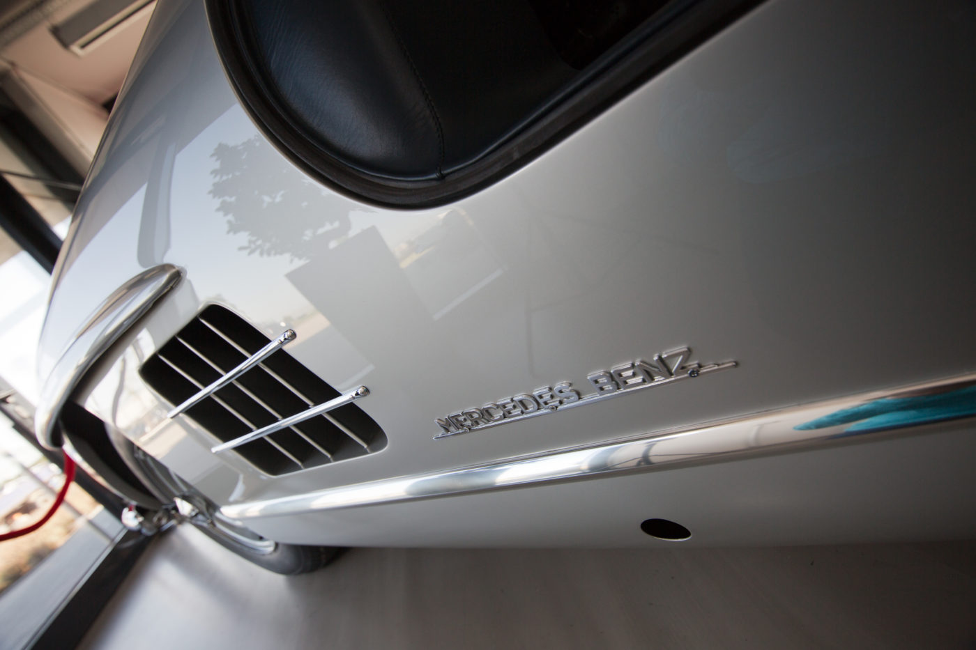 Der 300 SL ist der wohl bekannteste Klassiker aus dem Hause Mercedes. Sein bekanntestes Markenzeichen sind die beiden Flügeltüren. Die Aerodynamik war seit Beginn des 2 Sitzers revolutionär und sticht mit viellerlei Details in das Auge des Betrachters.
