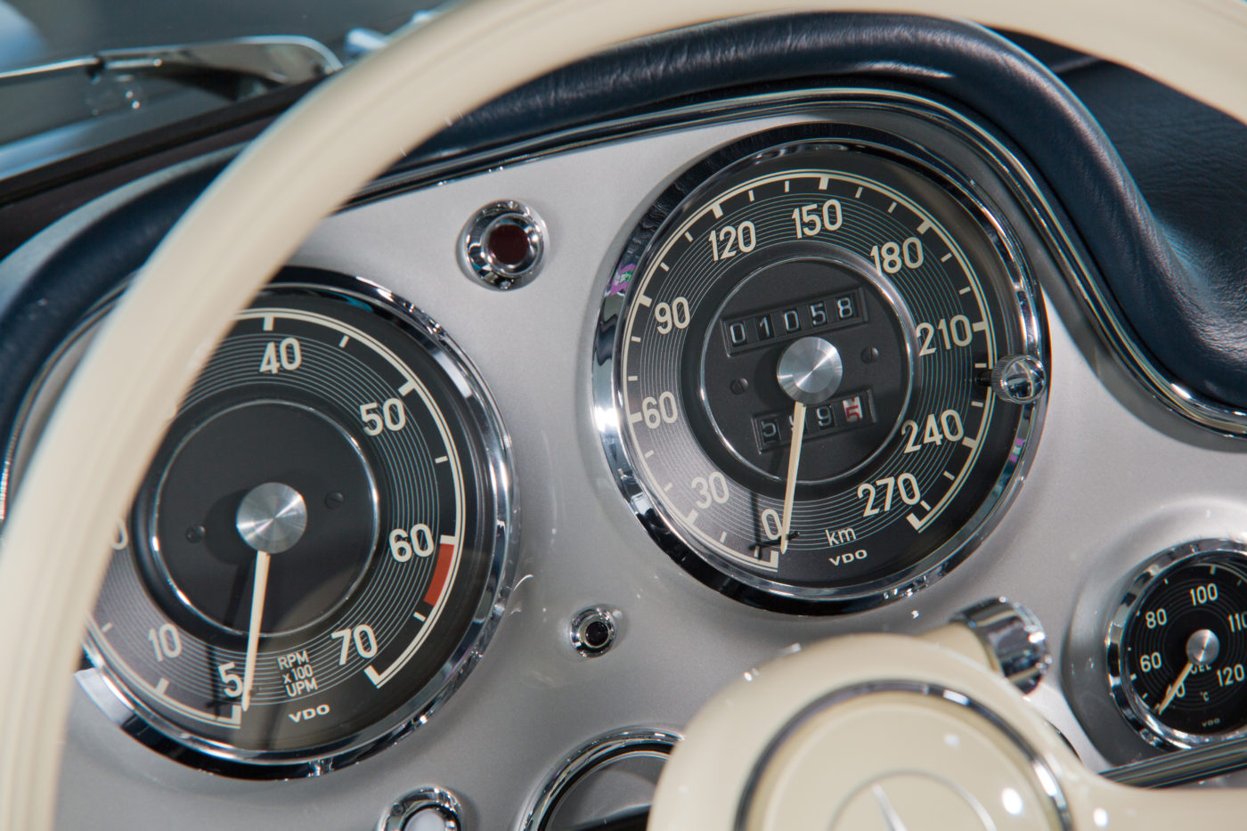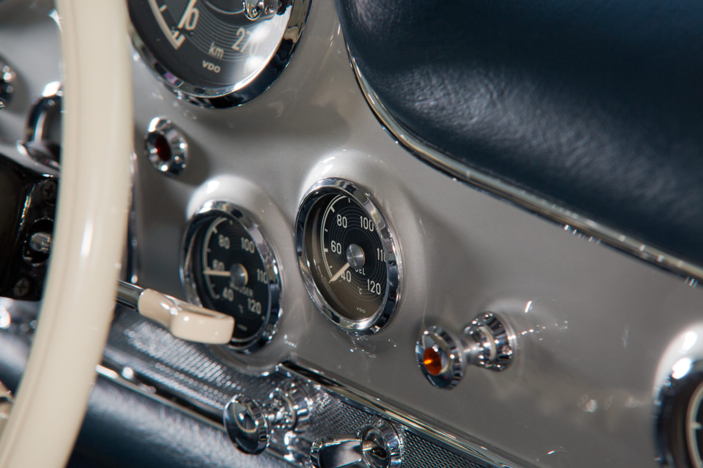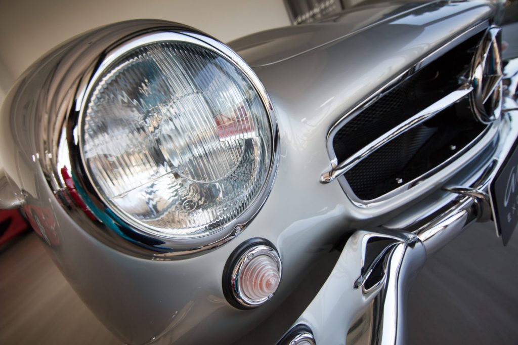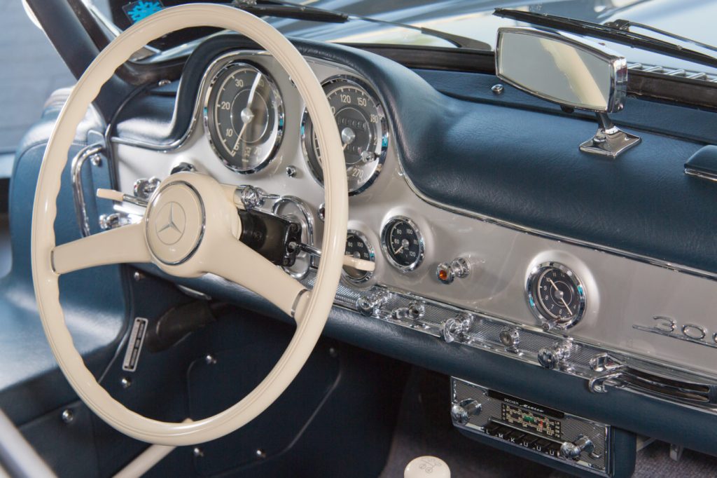Der 300 SL ist der wohl bekannteste Klassiker aus dem Hause Mercedes. Sein bekanntestes Markenzeichen sind die beiden Flügeltüren. Die Aerodynamik war seit Beginn des 2 Sitzers revolutionär und sticht mit viellerlei Details in das Auge des Betrachters.
