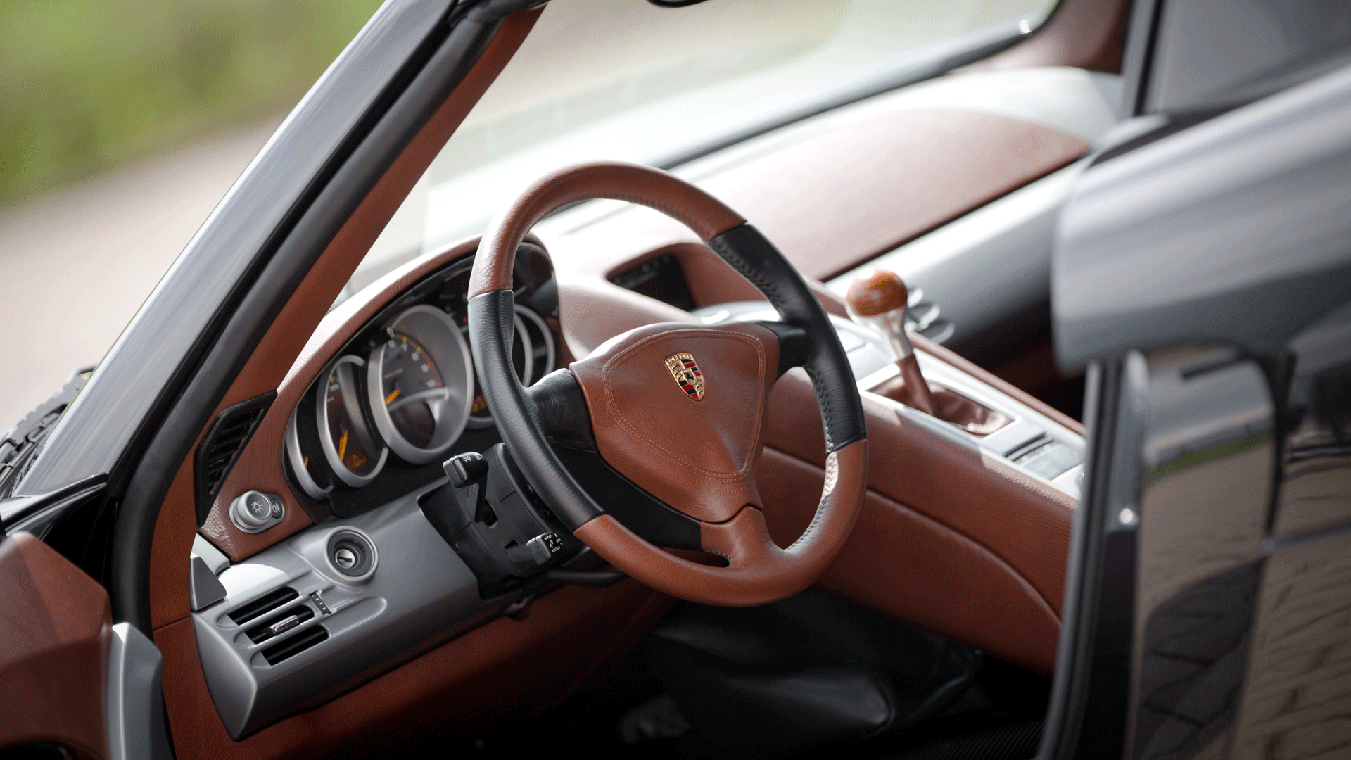 Der Porsche 980 Carrera GT gilt bis heute als eines der faszinierendsten Fahrzeuge, die je von Porsche entwickelt wurden. Das hier beschriebene Exemplar präsentiert sich in einer eleganten Außenfarbe Schwarz, die den puristischen und zugleich kompromisslosen Charakter des Supersportwagens unterstreicht. Das Interieur in Ascot Braun und Schwarz verbindet klassische Sportlichkeit mit einem edlen und zeitlosen Ambiente, das den Anspruch des Carrera GT als fahraktive Legende mit außergewöhnlichem Stil widerspiegelt.